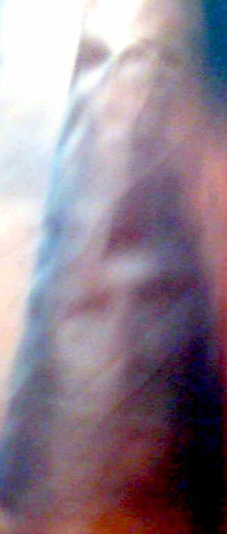 The first face at the top is easy to see. Now look just slightly to the right you can see another set of eyes. Its like the face is doubled. A classic vision of a spirit. The more I look at it the more I'm leaning to something not just matrixing. Its showing some of the classic signs of a spirit photograph. Almost dream-like. Disproportionate body parts, almost double exposed in parts, blurred, contorted.