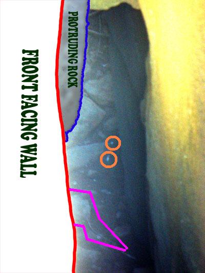 Then directly beside that is a protruding rock on the side of that wall.
