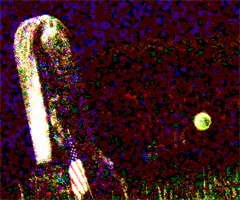 There are however other things in the picture. When I enhanced the brightness and stretched out the luma levels, you start to see hidden detail. Within that detail you can see the grave marker, and a flag. Also to the right of it you see a very dim light source. This does not appear to be a dust orb, a droplet or anything like that. This one seems very unique. One of the few orbs that I would love to explore further. Kudos!
