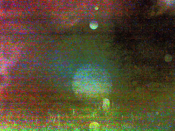 You can see the multiple circles which are in a semi-linear pattern. Although the light levels are low, this is still a lens flare. Most likely caused by some low level lighting near the bottom or bottom left of the image.