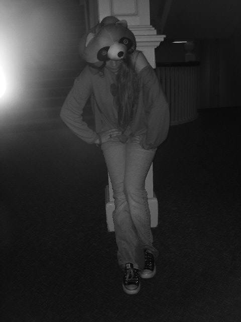 I took this picture back in April for my friend's art project. The flash was on, I think... Anyway. All that is behind her is carpet. Nothing reflective. I want to know if I captured any form of entity.