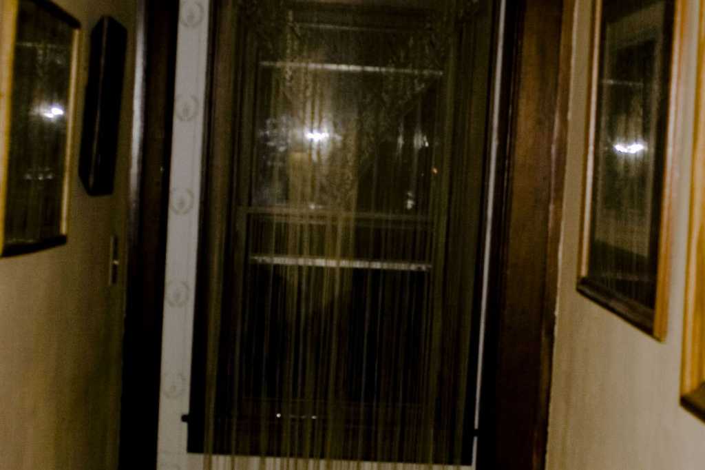 Now there appears to be a ghostly face in the window. It's not my reflection, as you can see the flash from my camera, which was at my eye level, in the window. Also, although what appears to be a forehead and hairline visible, there is no facial features, and no body under the face. A close up is here: