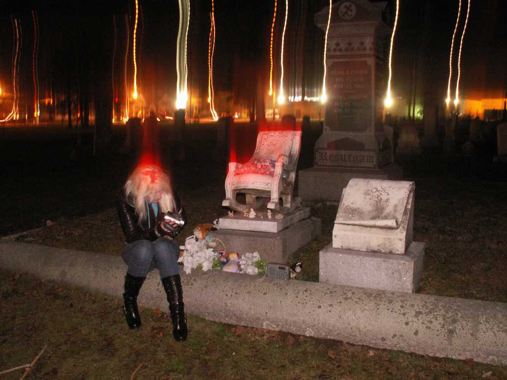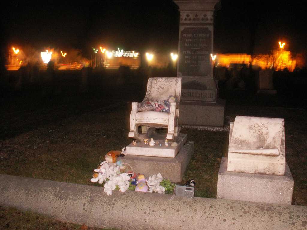 This is the grave of Pearl French. A 4 year old who died of meningitis in the 1880's. There are reports of people seeing a girl sitting in the rocking chair. People leave gifts of toys for Pearl, we didn't disturb anything that was left.