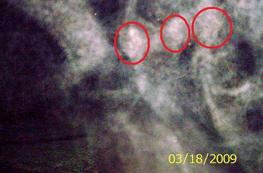But then if you take the picture as a whole, and increase the brightness, and bring the contrast back to a normal level. What emerges is mist, and some patterns. Now granted the one does look like a face. But I wonder if its not matrixing. The mind's tendency to make recognizable patterns out of randomness.