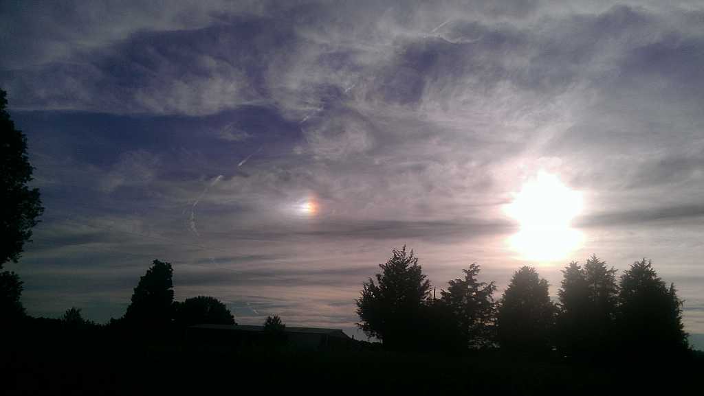 Seen a cool sky today.. no rain, or overtly high humidity, (2 SUNS) but thought the extra light burst or as my friend called the second sun looked cool, I'VE SEEN STUFF LIKE THIS THROUGH LENS REFRACTION BUT NEVER WITH MY NAKED EYE. has anyone else seen similar stuff, or caught it?